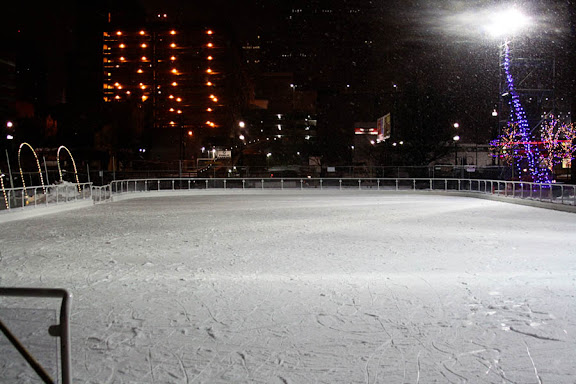 After successfully completing the first item on our Elf Day agenda, we headed up to Salt Lake City for some outdoor ice skating at the Gallivan Center. Matt and I went ice skating there on our second date more than four years ago and that's when the sparks really flew, so we love going back to relive the romance. This time, it was cold and snowing, so we bundled up and enjoyed the ambiance.